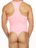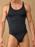 Our all-in-one bodysuit is designed with a thong seat and racer back. Sleekly sexy, constructed of super soft and smooth sports fabric, that will slim and display your masculine profile at its best. Perfect for yoga or any sport. Thong back with no opening between legs.