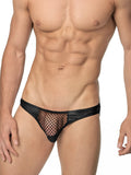 Minimal design incorporating luxurious quality dull foil rubber-look fabric and industrial fishnet. The masculine look of this jock brief is further enhanced by the industrial fishnet pouch in the front. Shaped pouch allows plenty of room for your junk.