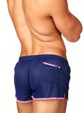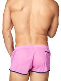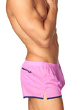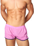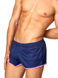 Smooth, lightweight, and comfortable vintage-style gym shorts in two eye-catching shades. Shorts feature a square-cut on leg, with a small side slit on both sides. Trimmed in contrast piping along leg and at pocket, with a 4-thread elasticated waistband. Front shaped seam for perfect fit.